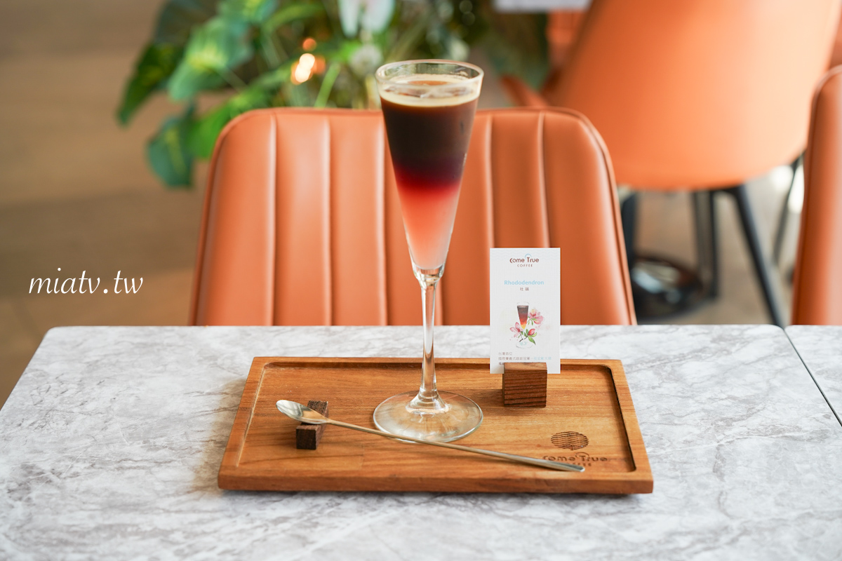 杜鵑咖啡$230元,僅限內用,是由台灣首位國際賽義式咖啡冠軍莊宏彰大師獨創的花式咖啡作品,白桃的甜、洛神的酸搭配濃縮咖啡很有層次感,是當天最愛的一款飲品。