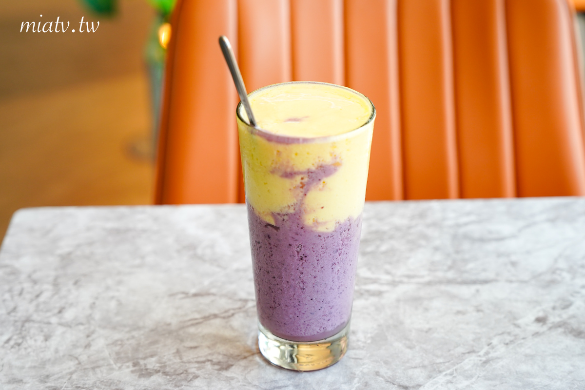甜莓鋒芒$170元,藍莓加芒果的果昔冰沙,顏色很好看,夏天喝清涼解渴,不過有點太甜。