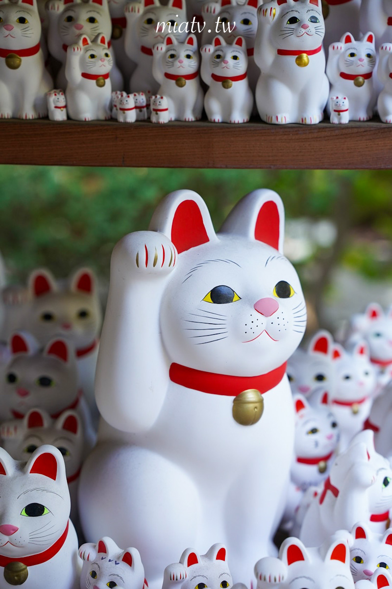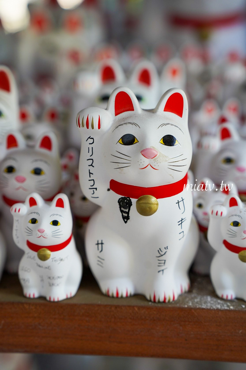 旅客在寺內購買小招財貓,祈願實現後會再把貓奉還給寺方,象徵「心願達成」。因此寺內的貓像會隨著季節、節日或參拜人數而增減。